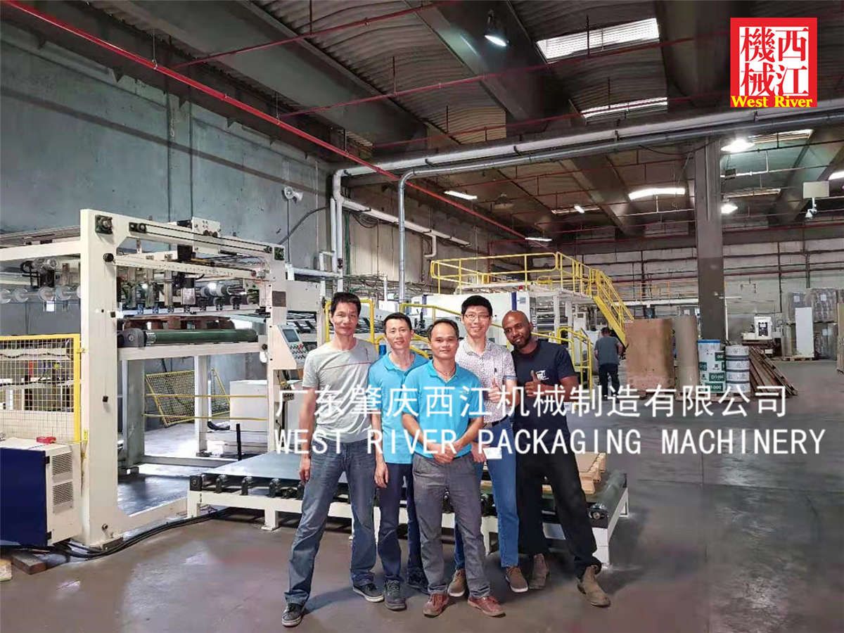 1. Exported automatic 2Ply single face corrugated cardboard production line. This corrugated cardboard production line is the second produciton line of West River Machinery purchased by the customer. 2.Inner vacuum fast-changing single-face