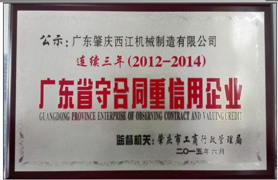 為引導企業(yè)誠信經(jīng)營,營造誠實守信的市場環(huán)境,廣東省開展了“守合同重信用”公示活動。我司經(jīng)過廣東省工商管理局近3個月的層層審核、考察,最終在眾多申報企業(yè)中脫穎而出,被授予連續(xù)三年(2012-2014)“廣東省守合同重信用企業(yè)”榮譽稱號。