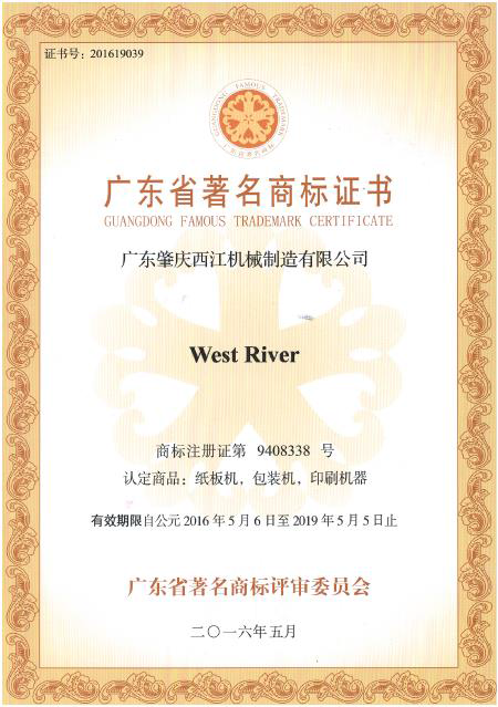 此次“廣東省著名商標(biāo)”稱(chēng)號(hào)的獲得,是西江機(jī)械多年來(lái)精益求精實(shí)施品牌戰(zhàn)略的結(jié)果,更是“West River”牌產(chǎn)品成為值得客戶(hù)信賴(lài)品牌的最佳證明,是品牌實(shí)力的象征、品牌價(jià)值的體現(xiàn),也是政府對(duì)“West River”品牌建設(shè)與產(chǎn)品質(zhì)量的肯定,再次印證了“West River”牌產(chǎn)品在瓦楞紙板包裝機(jī)械裝備行業(yè)中的地位。