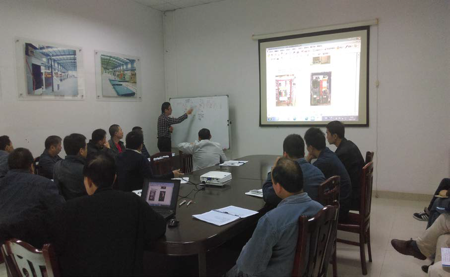 本次培訓由技術開發(fā)中心電氣工程師梁鏡豪和劉干強作為講師,主要針對高速瓦線、單機的電器電路的設計、智能化工作原理、常見故障的排除方法、技術參數(shù)的科學設置等知識進行詳細的講解。為加深學員的認識,兩位講師還利用現(xiàn)場互動、真實案例分析、實操講解等方式,針對調(diào)試現(xiàn)場出現(xiàn)的問題進行深入細致的剖析,有效加深了參訓人員的印象,收效顯著。